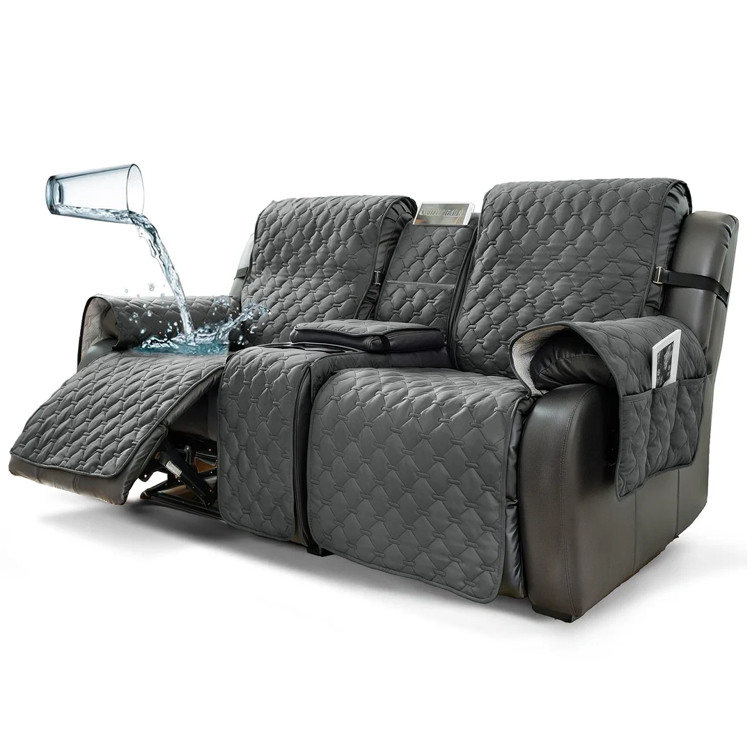 Loveseat Recliner Couch Cover with Console 100% Waterproof Non-slip Split Sofa Cover for Each Seat with Elastic Straps Washable Furniture Cover for Kids, Dogs