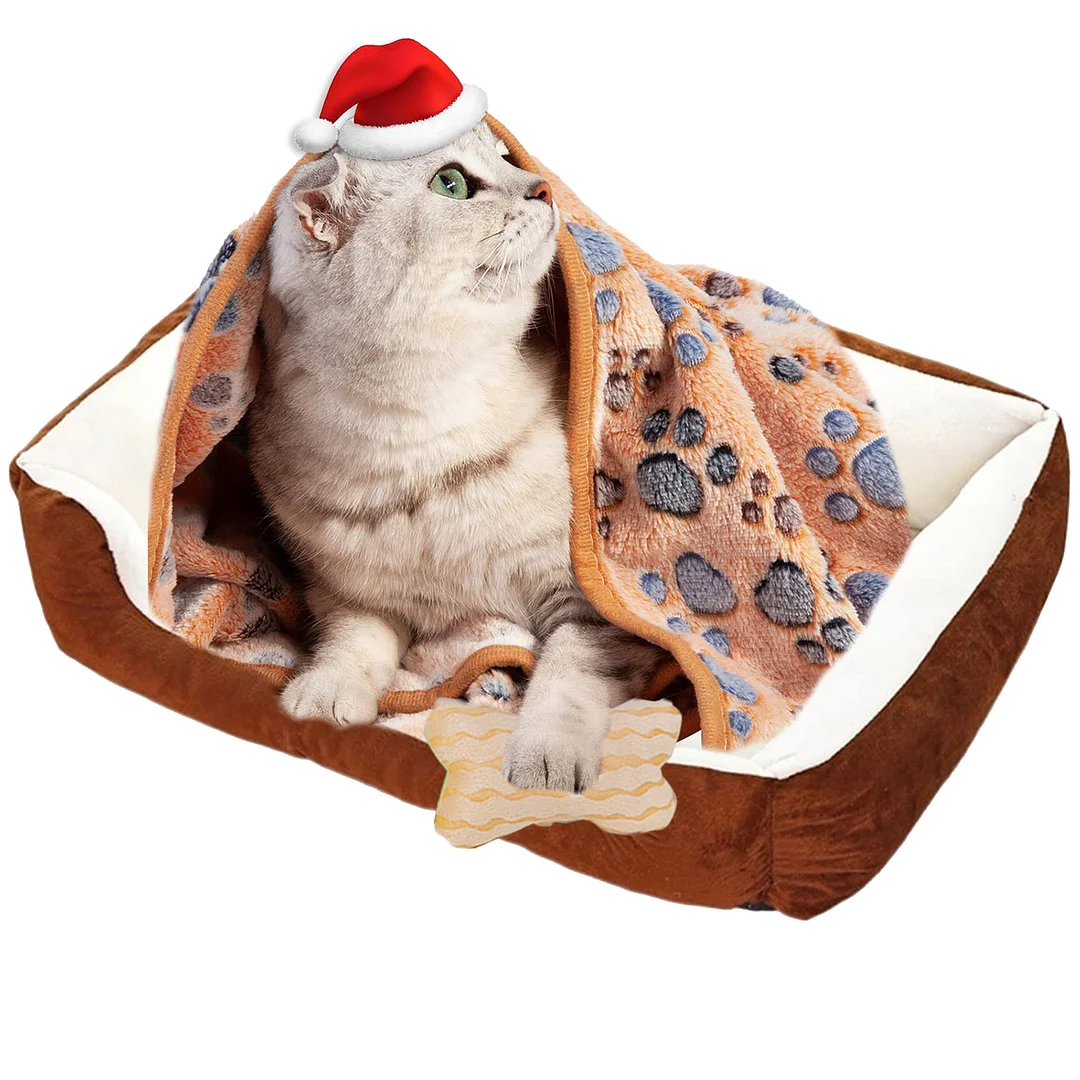 PayUSD Dog Beds for Small Dogs Medium Dogs Large Dogs with Dog Blanket & Bone Plush Toy Rectangle Washable Cat Bed Warming Orthopedic Pet Bed Calming Dog Bed for Small Dogs and Cats
