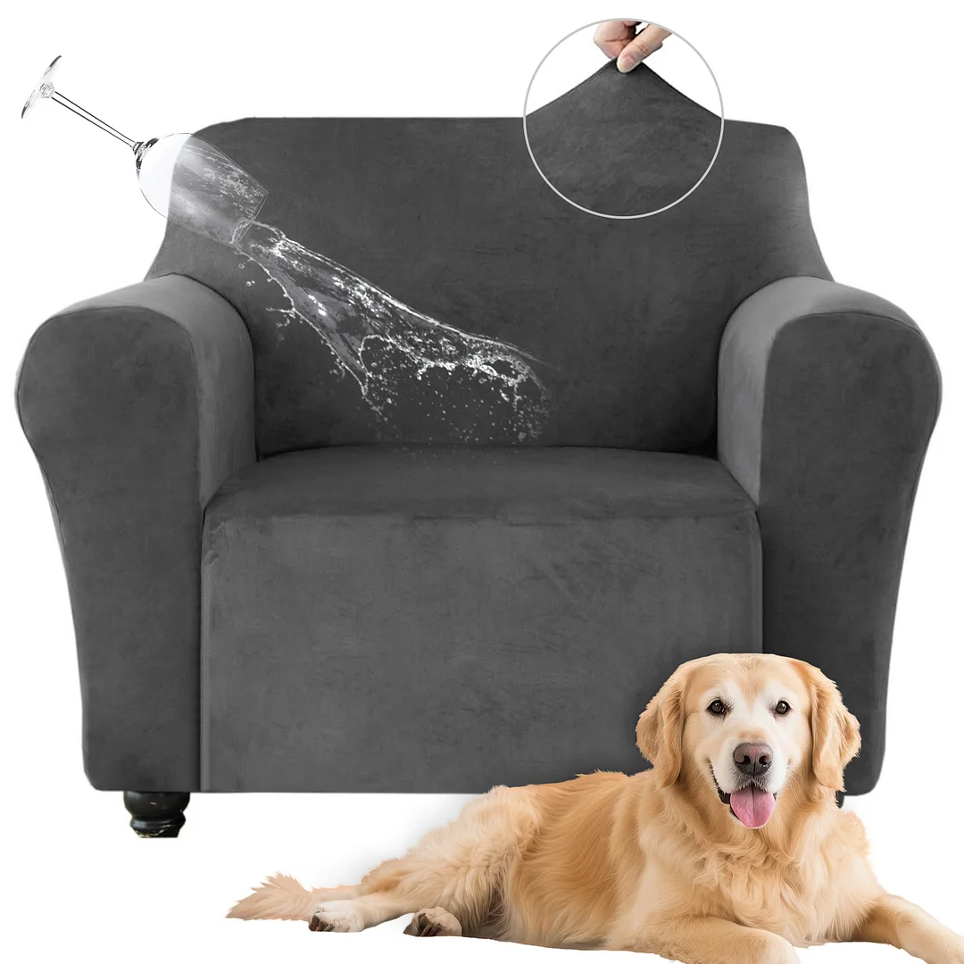 SANMADROLA 100% Waterproof Couch Covers Velvet Stretch Slipcover for 3 Cushion Sofa Cover Non Slip Leakproof Washable Furniture Protector for Kids Dogs Cats Pets