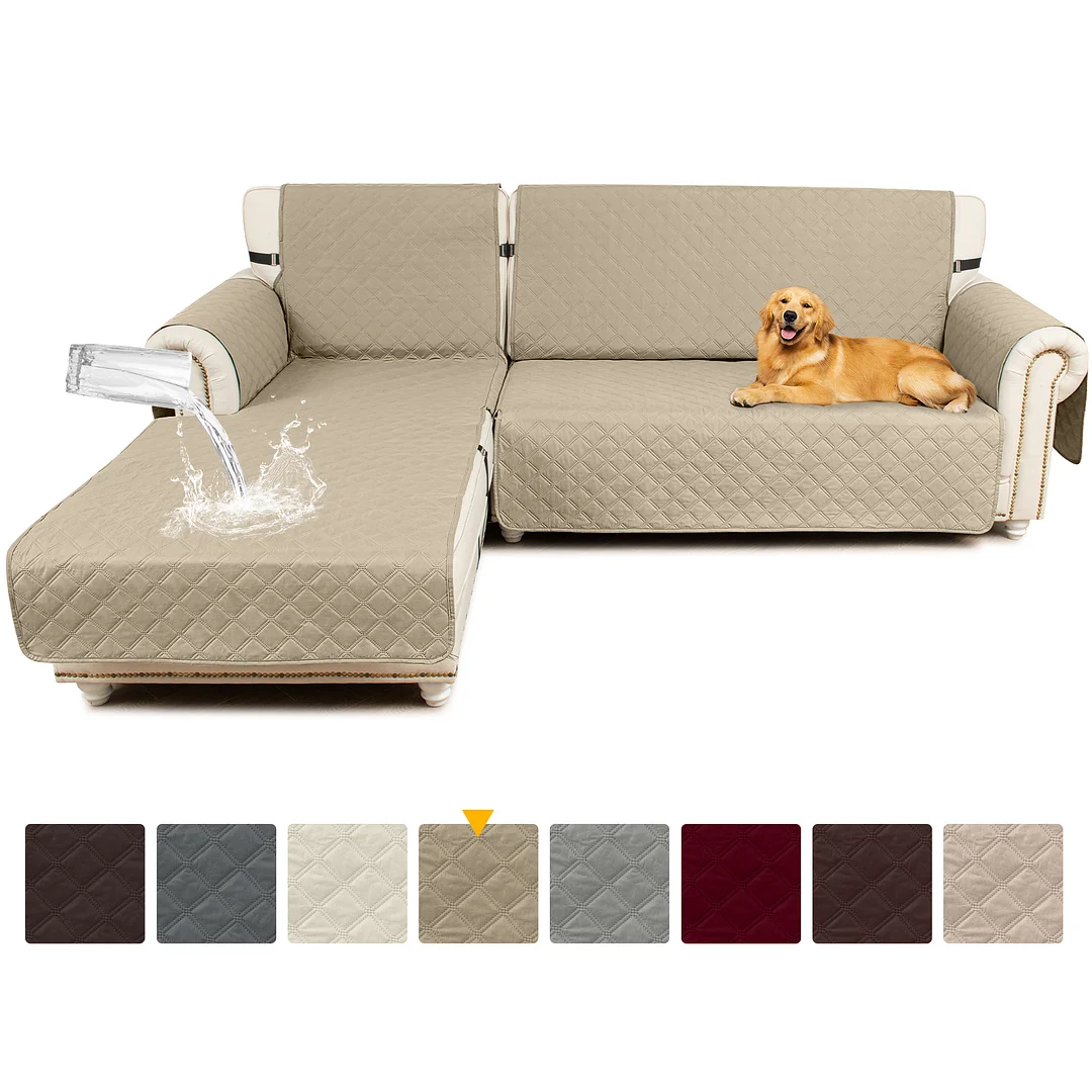Sanmadrola Waterproof Couch Cover L Shape Sofa Covers Chaise Lounge Slip Cover Reversible Furniture Protector Cover for Pets Kids Children Dog Cat