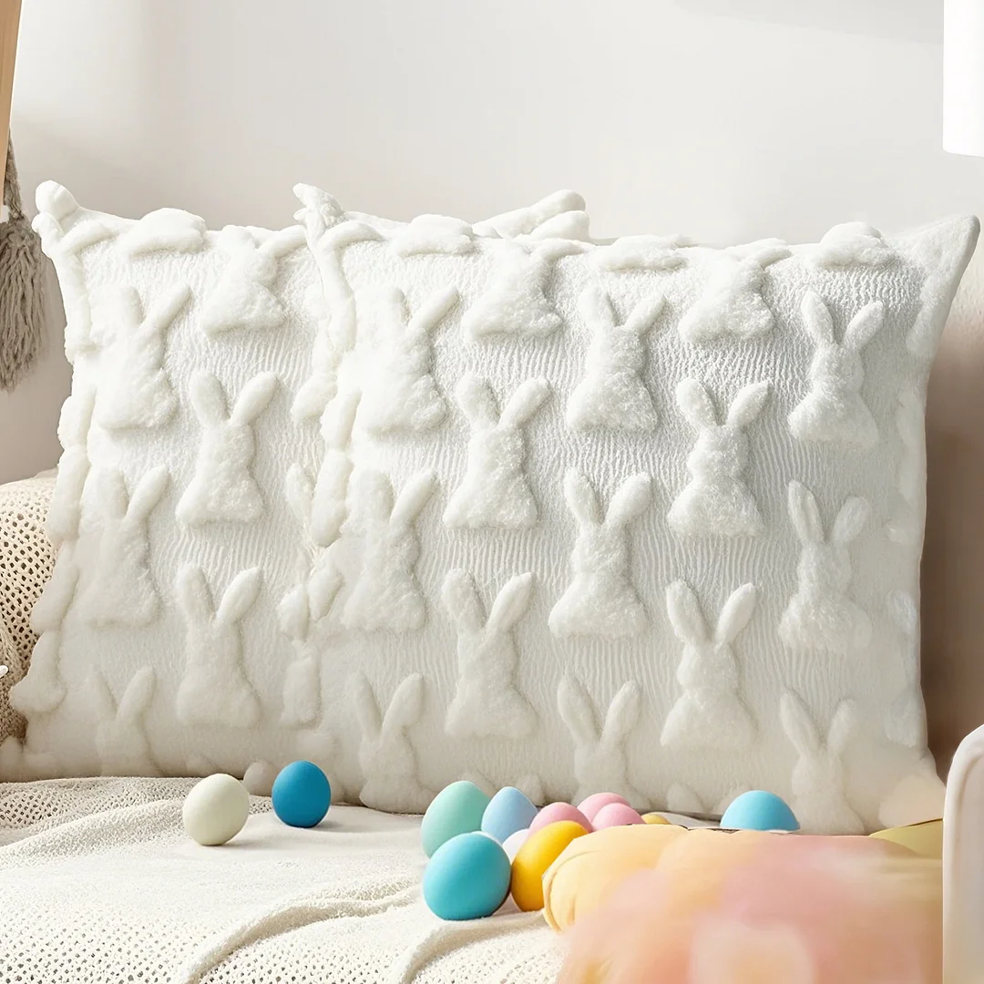 Sanmadrola Easter Pillow Covers 18 x 18 Inch Pack of 2 Luxury Soft Bunny Rabbit Pattern Decorative Throw Pillowcases for Happy Easter Spring Holiday Decor Home Party Sofa Couch