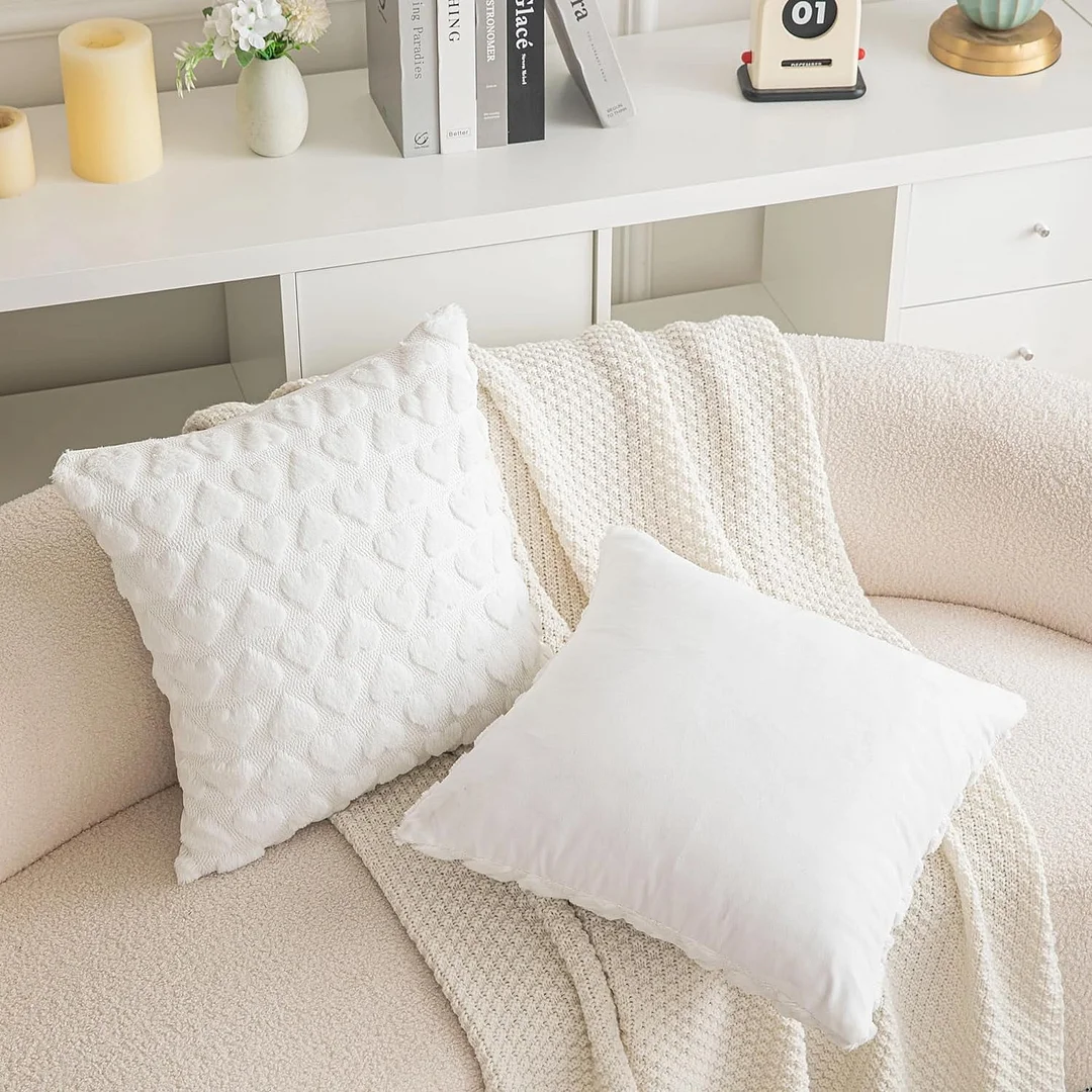 Throw Pillow Covers with 3D Heart Pattern Sofa Pillow Covers for Living Room