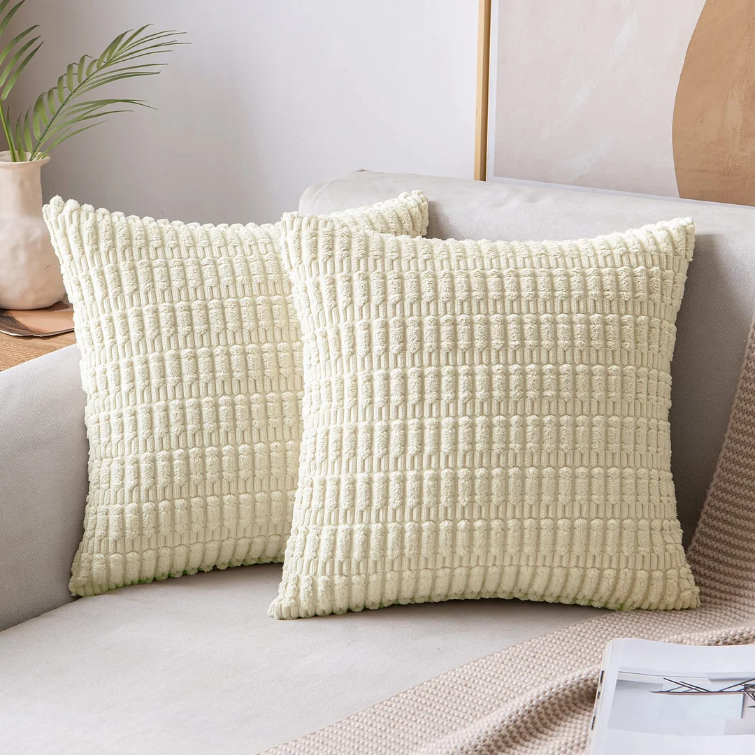 Sanmadrola Throw Pillow Covers Set of 2 Corduroy Decorative Pillow Cases Couch Pillows Soft Boho Striped Cushion Cases Set for Sofa Living Room Couch Bedroom Car