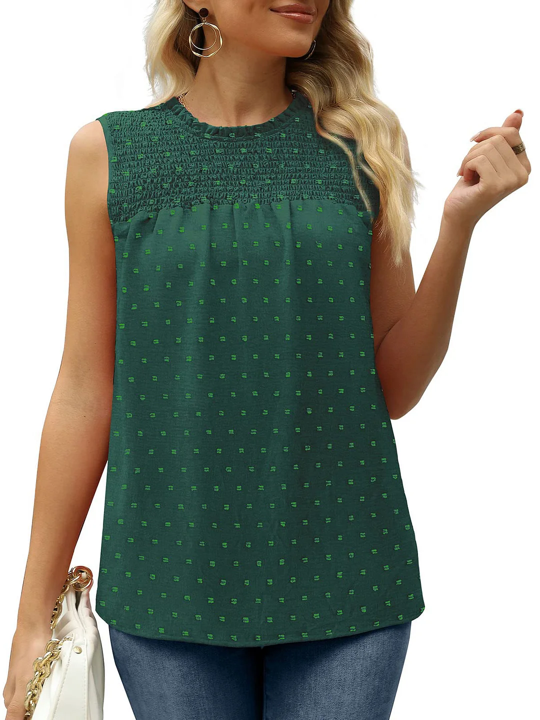 Women's Summer Top Ruffle Sleeveless Blouse Swiss Dot Flowy Shirt Tunic Top Summer Casual Cute Blouse